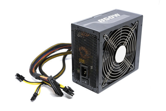 850W Power supply unit with cable and switch I O, black color for full ATX Tower case PC have big fan for cool ioslated on white background
