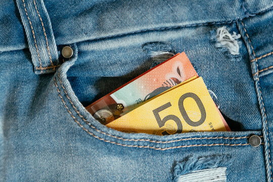 Australian Money in Pants Pocket
