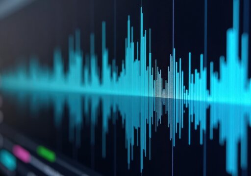 Abstract colorful sound wave illustration with vibrant hues in a dark background, representing audio visualization and music analysis