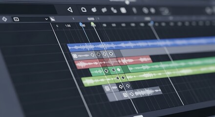"Editing Software Display, Video Timeline View, Digital Editing Tools, Multimedia Interface