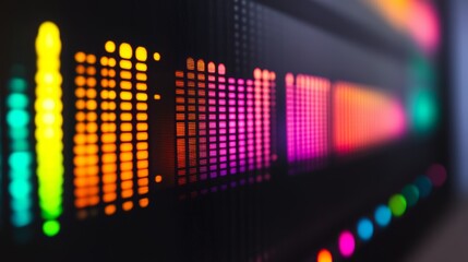 Digital sound wave equalizer concept with neon-colored light frequencies, representing music and technology