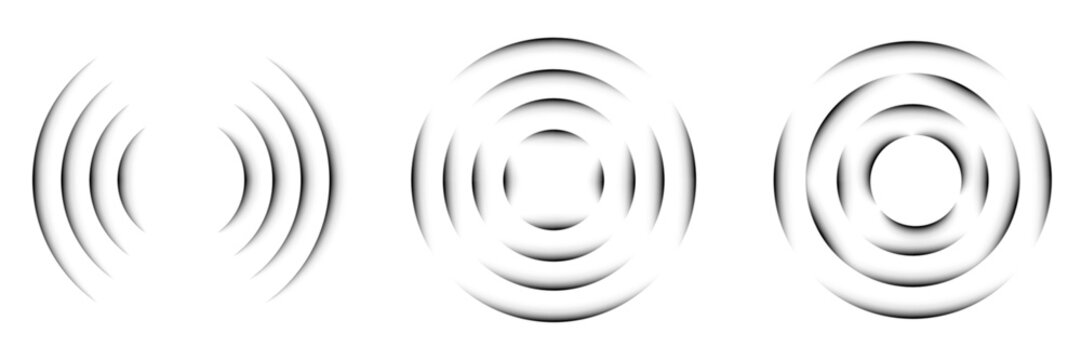 Glowing gray black wave and ripple effect symbol png overlay with concentric circles vibration motion and dynamic audio sound waves signal design on transparent background