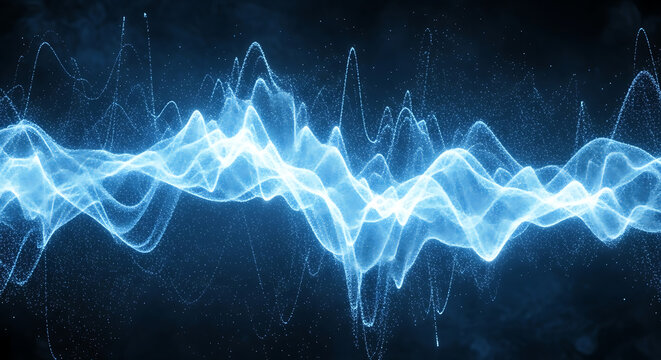 A single vibrant blue sound wave graphic representing vibrations and resonance on a clean white background