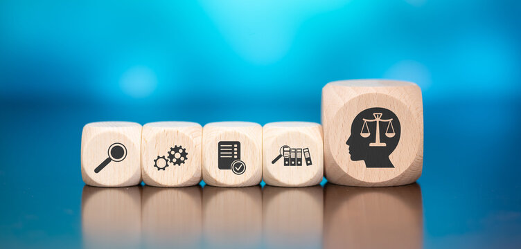 magnifying glass on wooden blocks with checklist