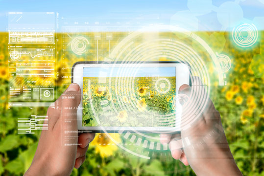 Augmented Reality device using smart technology, mixing virtual and augmentation reality through the application of artificial intelligence and computer AI tech assistance for agriculture and farming