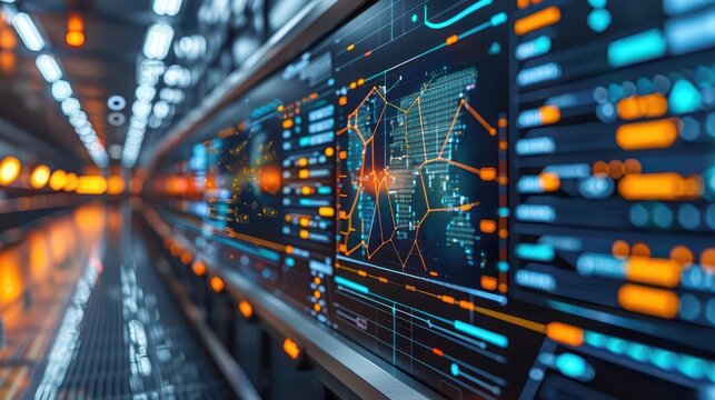 Photo of a technology analyst observing digital data and analytics in a modern high-tech workspace