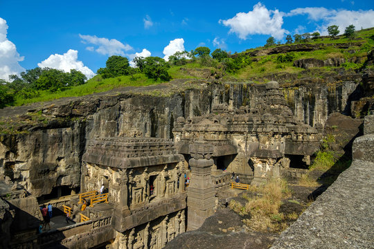 Ellora Cave with Buddha statue inside in Maharashtra, India