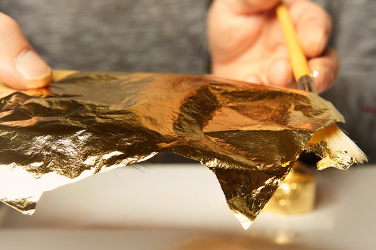 Artwork of gilding - covering an object with plate metal gold