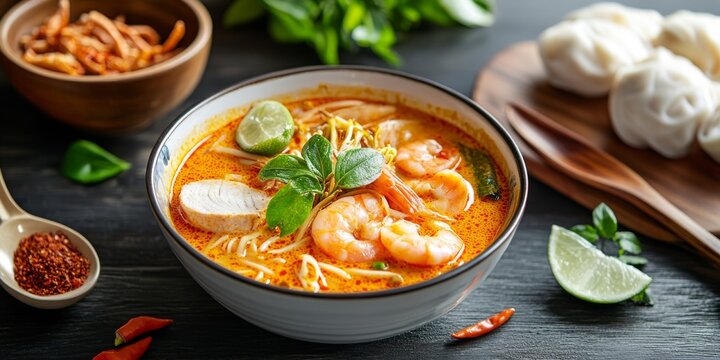 Asian mother and daughter enjoying traditional noodle meal at home