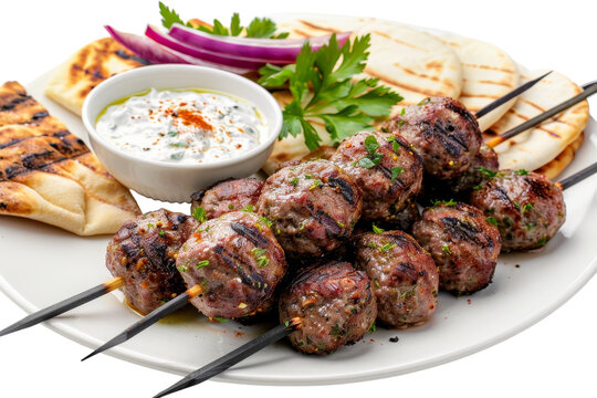 Exploring Grilled Lamb Kofta Isolated On White Background.