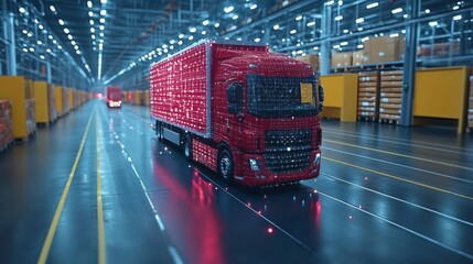 Futuristic data processing over warehouse interior