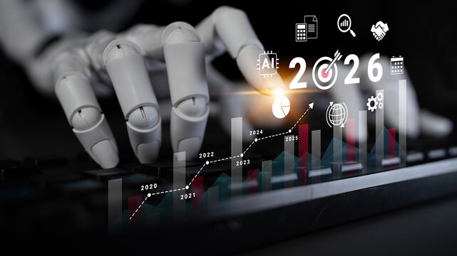 AI predicting 2026 business trends through advanced analytics, visualizing global growth and innovation for strategic decision-making Parse
