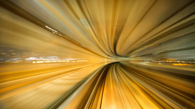 Abstract high speed technology POV train motion blurred concept from the Yuikamome monorail in Tokyo, Japan