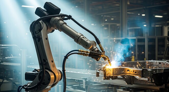 Robotic Arm Welding Sparks in Modern Industrial Environment