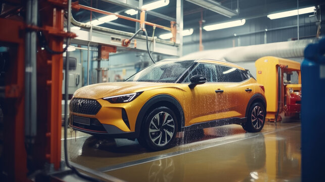 Car going through an automated car wash machine