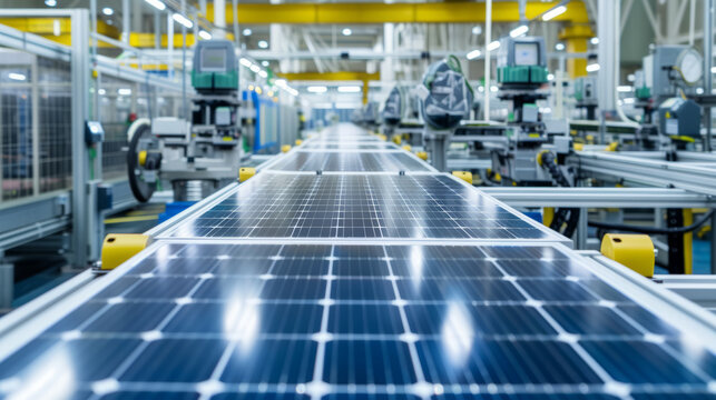 Solar panel production line in a modern factory