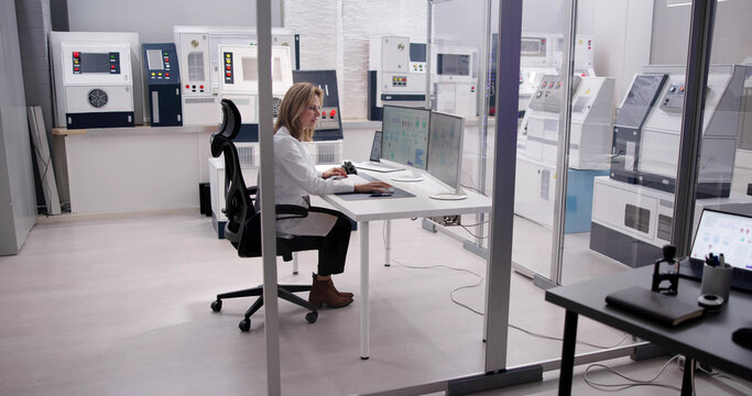Industrial Automation Engineer Girl Operating Computer Software