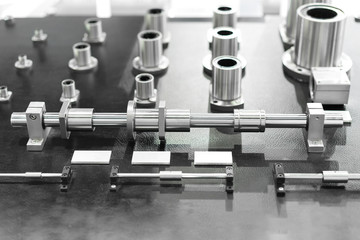 Mechanic in blue uniform inspecting engine part in auto repair shop