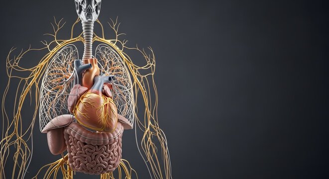 Intricate anatomical illustration of the human vagus nerve system in head and neck regions