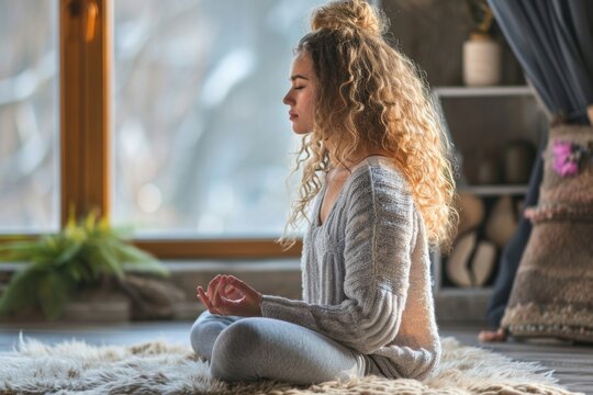 Mindfulness meditation concept. Meditating young woman. Yoga. Concentration.