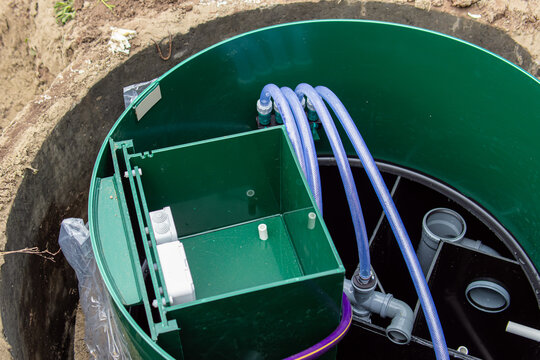 Independent septic tank setup on a country estate, focusing on system upkeep and environmental compliance