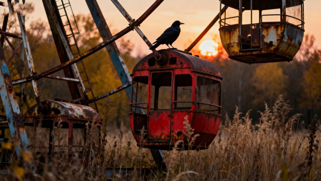 AbandonedFerrisWheelAtSunset