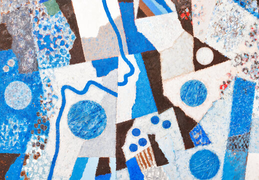 Blue, brown and white in geometric shapes in an avant-garde color pattern.
