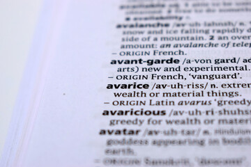 Close Up Of English Dictionary Page With Word -  avarice