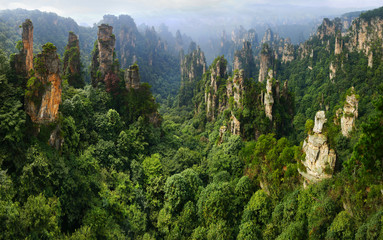 Rock formations in Wulingyuan Scenic Area of Zhangjiajie Forest Park, China