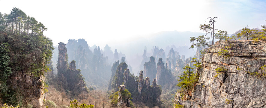 Beautiful panorama of karst mountains in Zhiangjiajie National Park, China