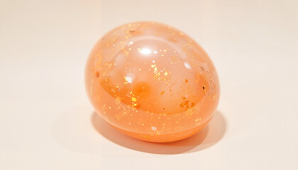 Sunstone cabochon glittering in peach-orange hues, natural beauty