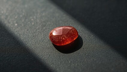 Smooth red aventurine stone resting on gray slate, used in mineral collections or spiritual practices
