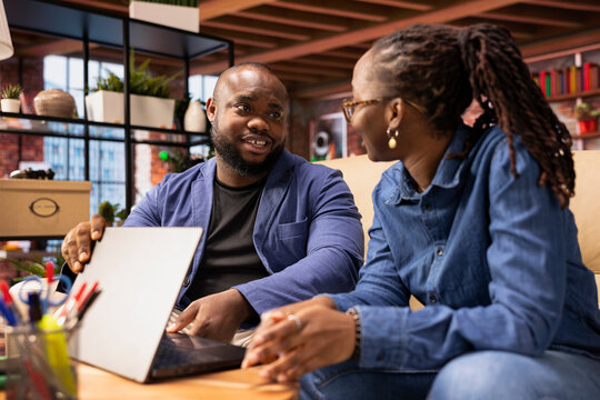 African American man asking his partner to take a break from remote work, sharing a supportive conversation at home. Prioritizing mental health and relaxation to avoid burnout and improve wellbeing.