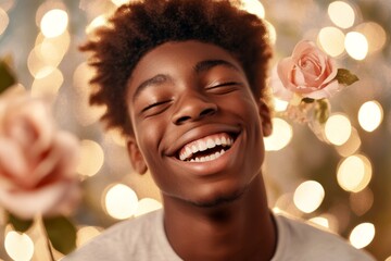 Love confession. Valentine's day greeting from man or for man: extraordinary striking image of loving black young person boy. Commercial ad campaign conceptual art. Love confession. Man love.