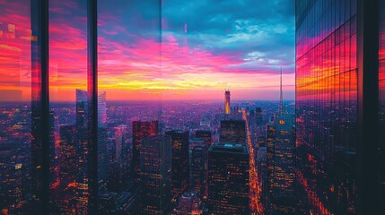 Cityscape at Sunset Through Skyscrapers