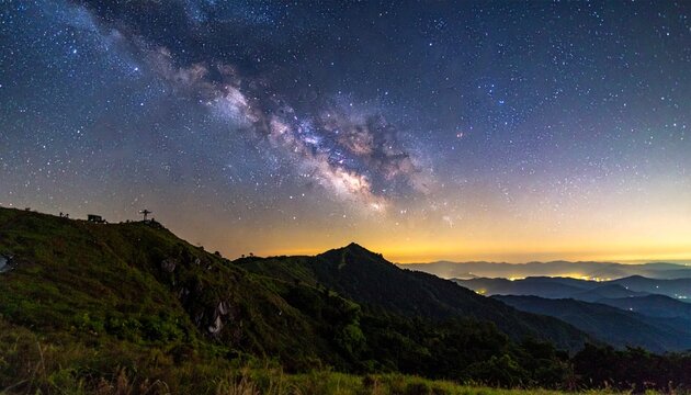 Magical starry night sky with vibrant blue nebula and twinkling stars