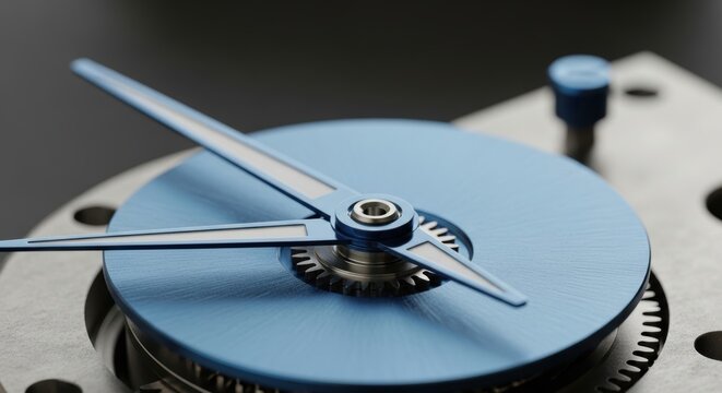 Close-up of blue mechanical watch gears with precision engineering