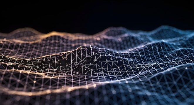 Abstract Digital Waveform Structure with Illuminated Points and Geometric Grid Pattern