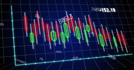 Displaying candlestick bars fluctuating on dark blue grid plane, with cyan axes labels 80513 152