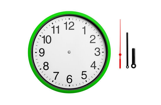 Round clock with arrows isolated on white background.