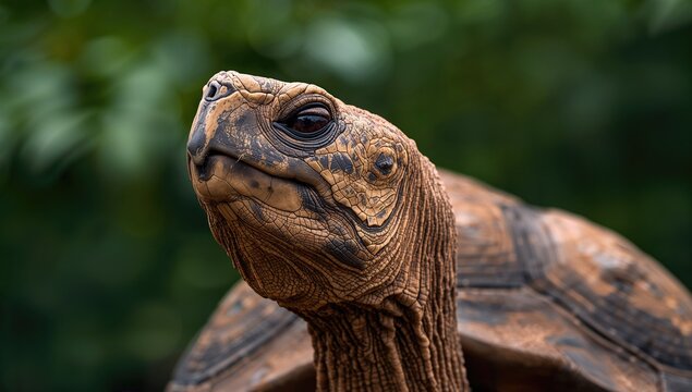 Aldabra giant tortoise head close-up, showcasing unique features and textures, preservation