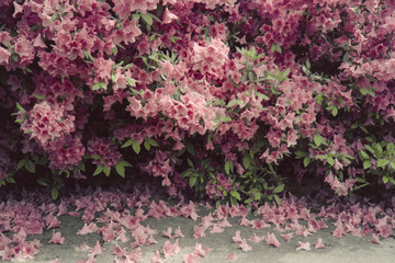 Azalea bush blooming. Vivid pink flowers, beauty in nature at spring