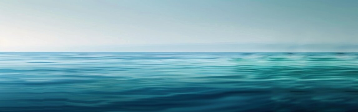Infinite ocean stretches under an overcast sky, meeting the horizon in a seamless, tranquil expanse of blue and grey.