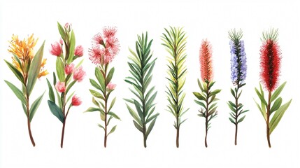 Bottlebrushes Australian plants set