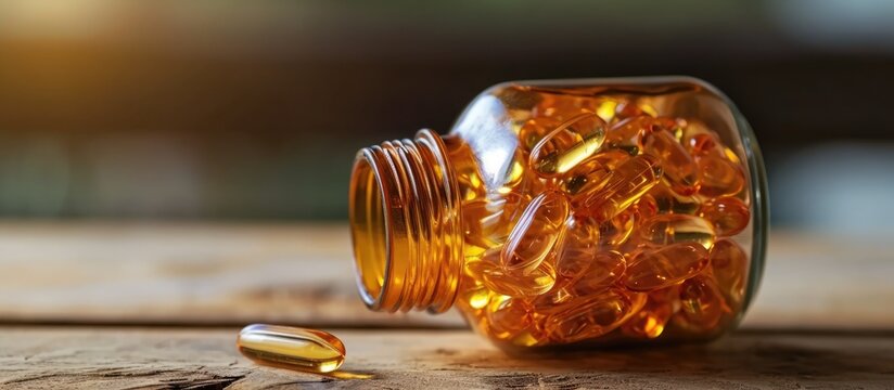 Bright orange vitamin B6 capsule surrounded by smaller orange capsules, highlighting health benefits and nutrition