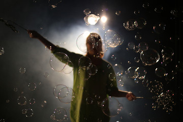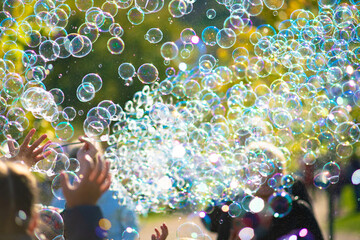 Children's street party with soap bubbles