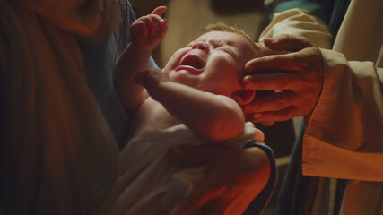 Close Up Of Father Holding Newborn Baby Son In Nursery