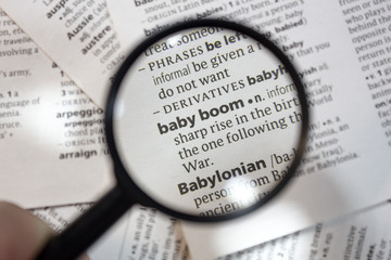 The word of phrase - baby boom - in a dictionary.