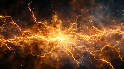 Electric sparks radiating from central point on black matte bac powerful electric energy abstract background high resolution stock photography