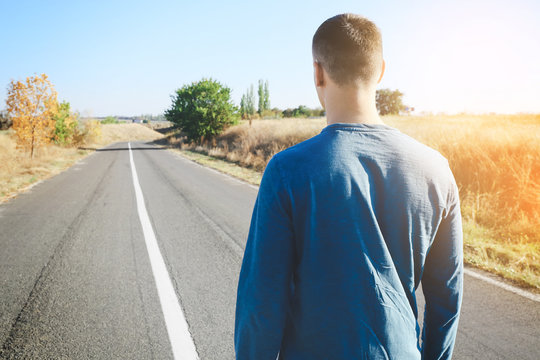 Young man standing on road. Concept of choice